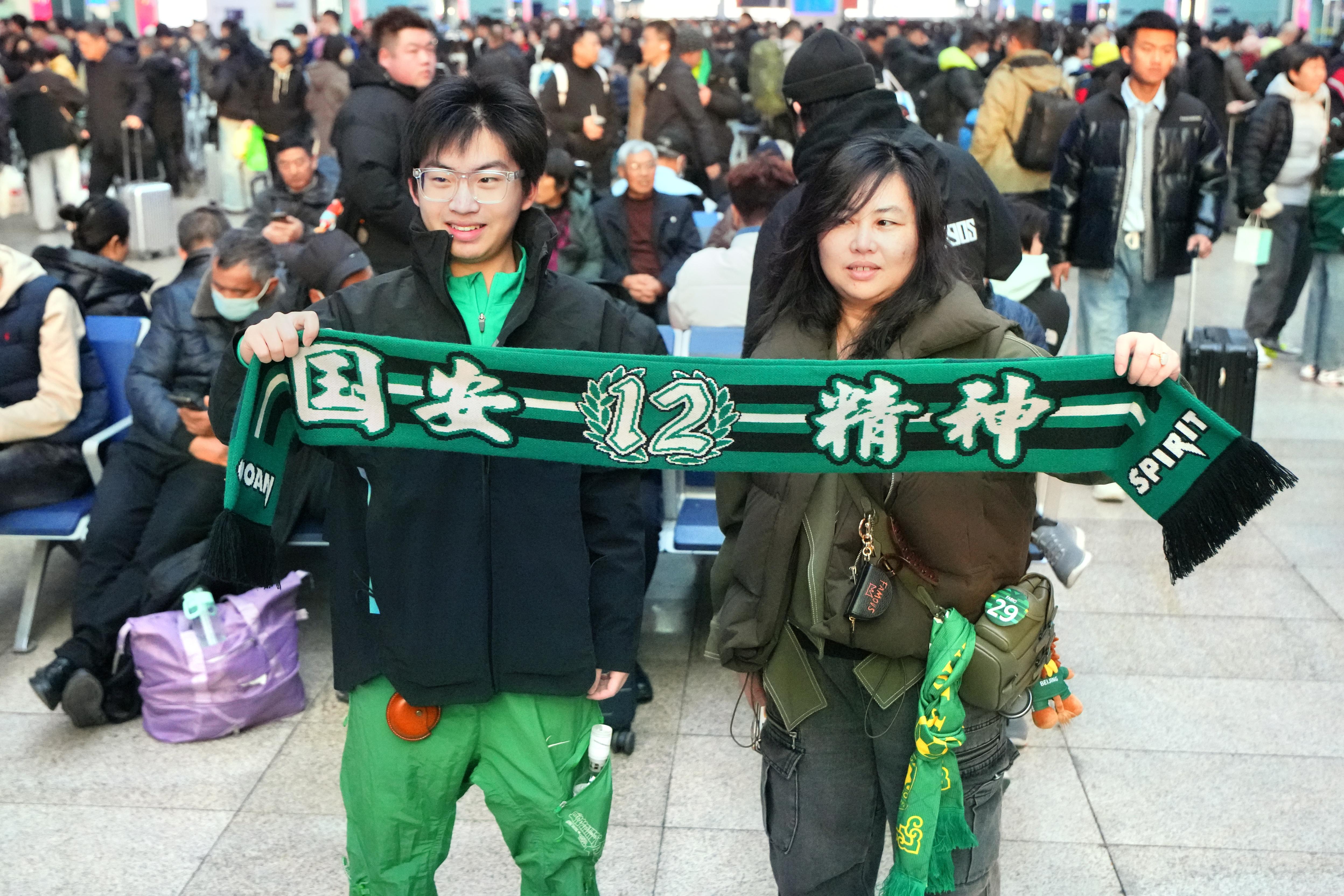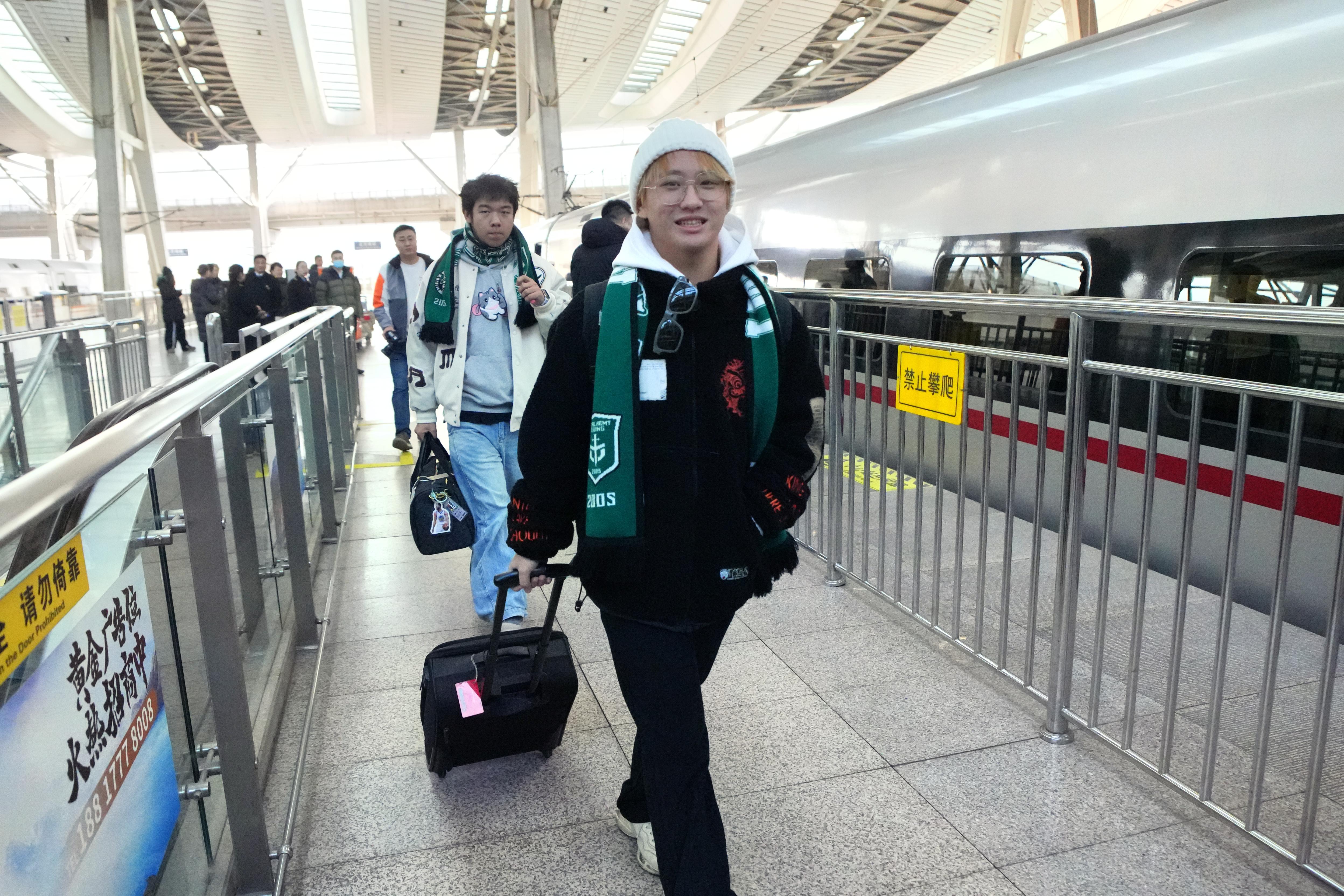 15岁的小球迷王嘉恺今天早早就来到了北京南站。这是他第一次前去客场看国安队的比赛。简略和家东说念主一齐坐着高铁去看球,对他来说一切皆是那么新奇。“咱们是通过球迷协会报的名,购票也特地班师。简略和这样多球迷一回车,我感到特地感奋,特地幸福。”