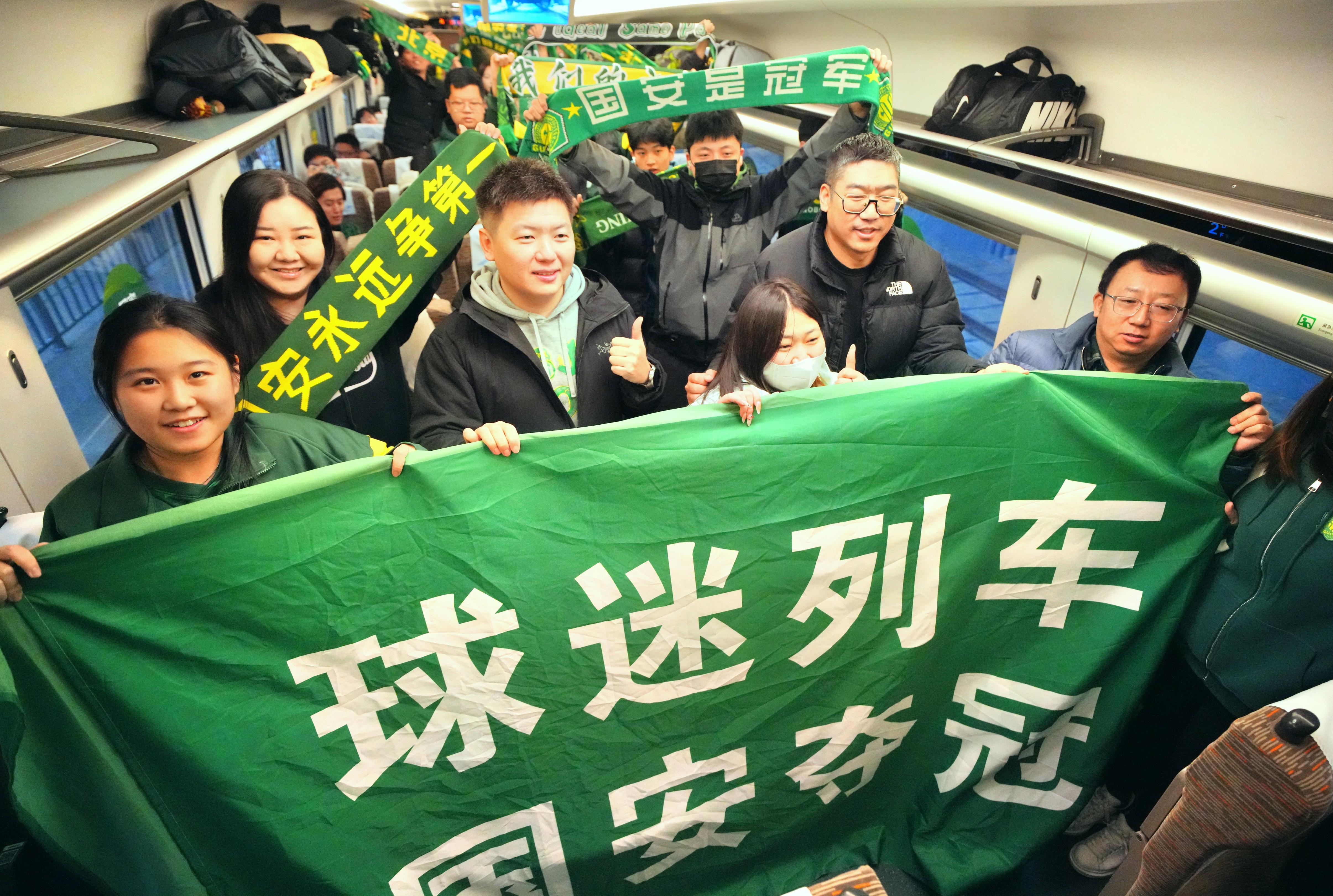 12月6日晚,足协杯决赛将在苏州伸开角逐。上昼9时10分,载有547名北京国安球迷的G115次列车从北京南站准时发出。这是国铁北京局初度开行“球迷列车”。